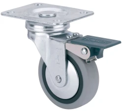 Made of pressed steel castor up to 2 mm. Finish: Zinc-plated.Ball bearing swivel head. Rubber wheels Ø 50 and 60 mm with threadguards. Manufactured to European standards EN 12528.