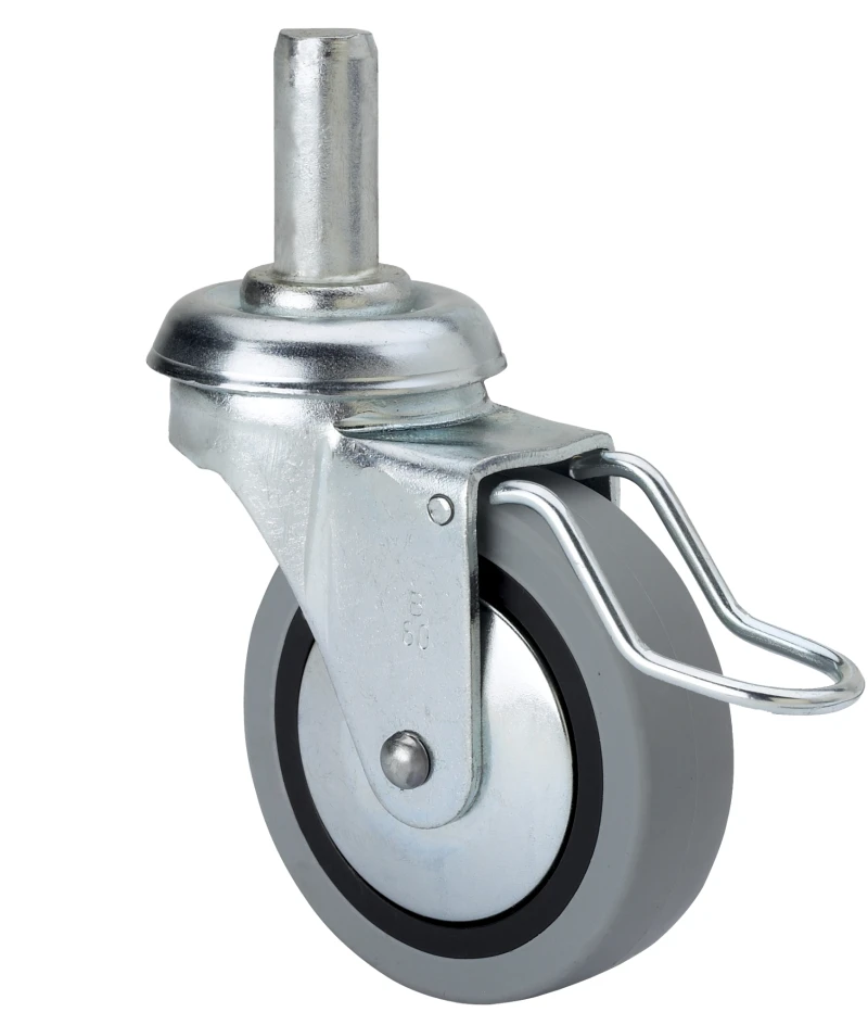 Made of pressed steel castor up to 2 mm. Finish: Zinc-plated.Ball bearing swivel head. Rubber wheels Ø 50 and 60 mm with threadguards. Manufactured to European standards EN 12528.