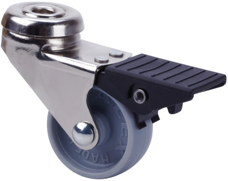 Made of pressed steel castor up to 2 mm. Finish: Nickel-plated. Rubber wheels Ø 50,Ø60 mm with threadguards. Manufactured to European standards EN 12528.