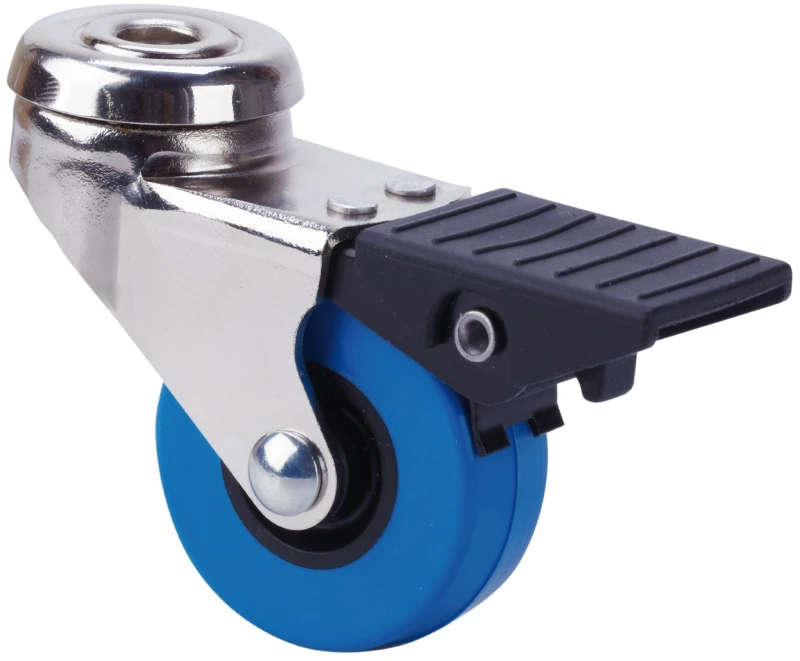 Blue soft injected polyurethane castors, especially indicated to support high-loads up to 40 Kg.