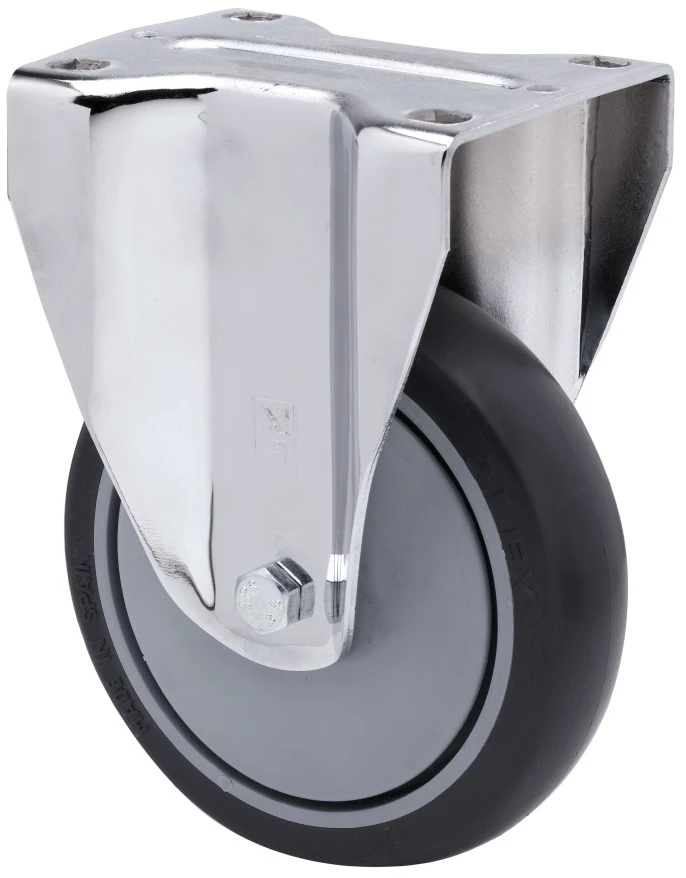 Castors with polypropylene centre and thermoplastic grey rubber tyre. Especially indicated to support high-loads up to 100 Kg.
