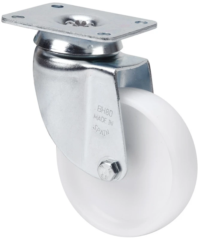 White polypropylene castors. Especially indicated to support high-loads up to 125 Kg.