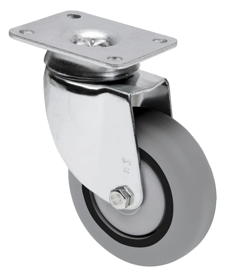Grey injected rubber castors. Especially indicated to support high-loads up to 80 Kg.