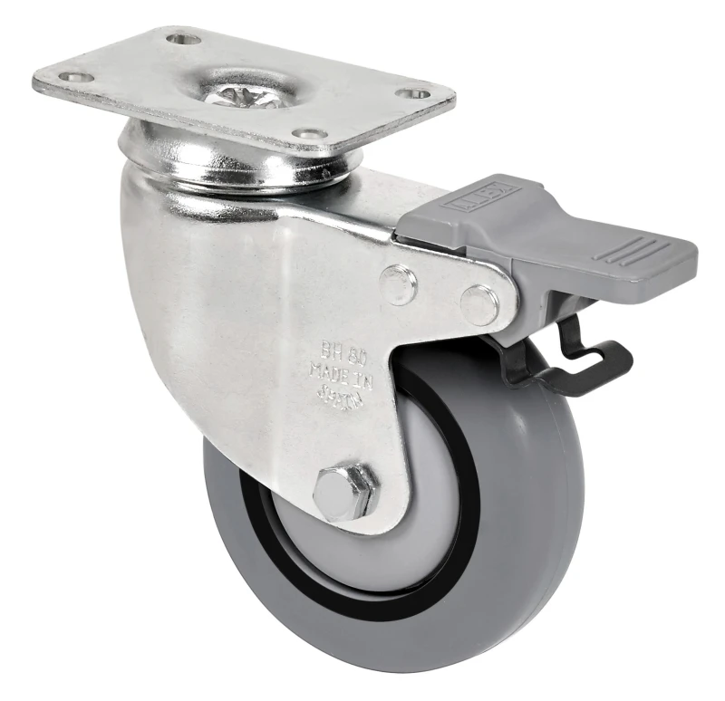 Grey injected rubber castors. Especially indicated to support high-loads up to 80 Kg.