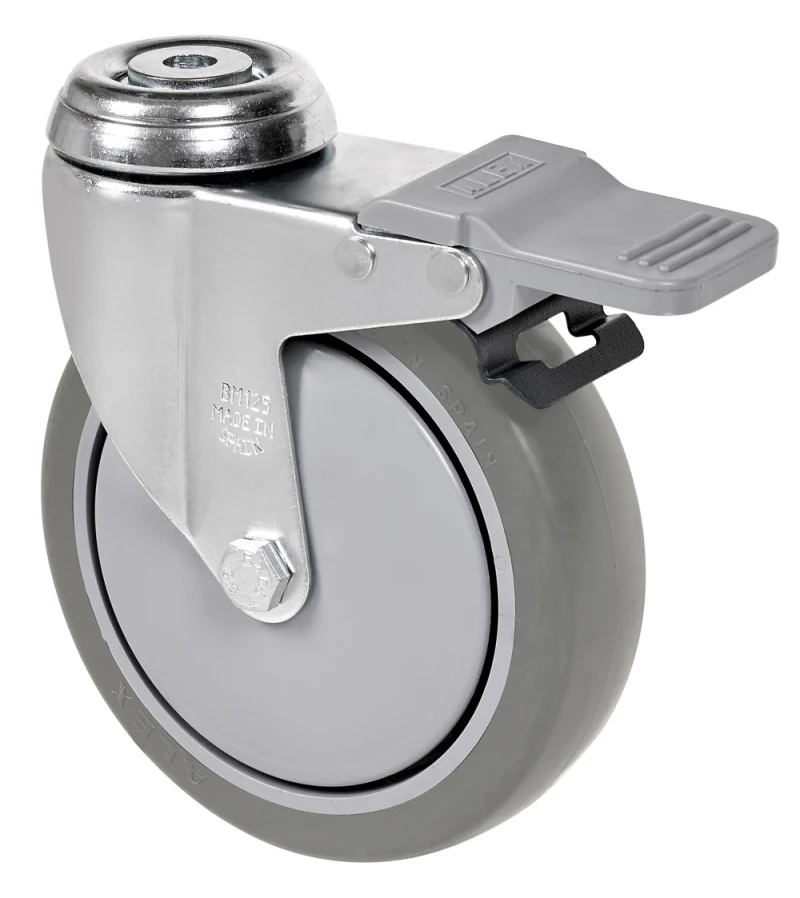 Grey injected rubber castors. Especially indicated to support high-loads up to 90 Kg.