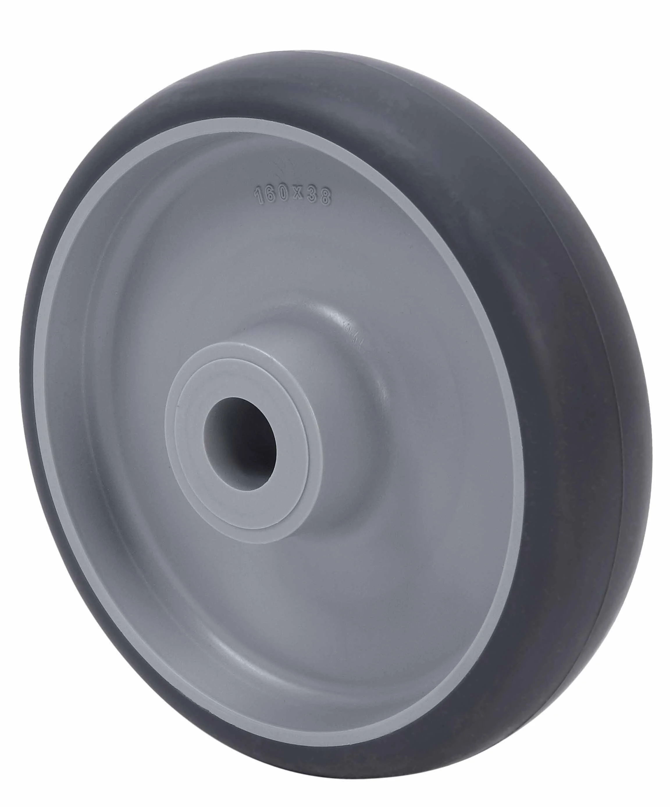 Injected rubber tyre on polypropylene centre
