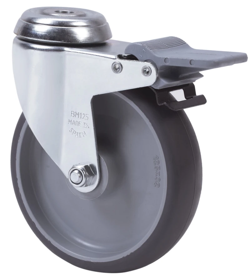 Grey injected rubber castors. Especially indicated to support high-loads up to 90 Kg.