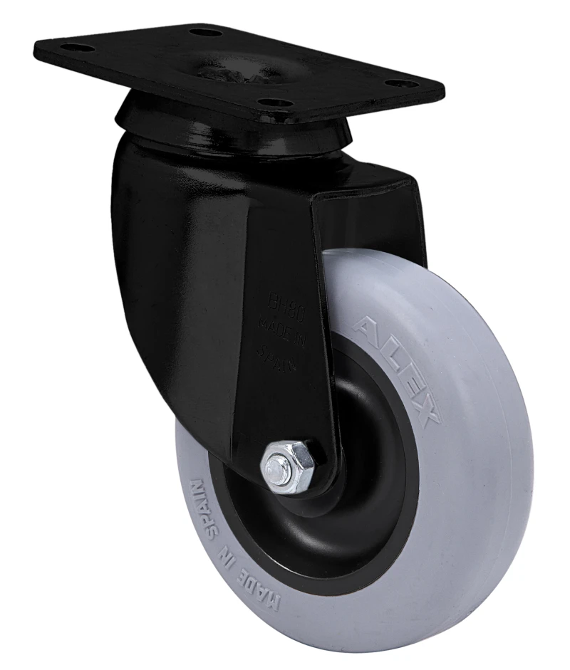 Injected grey rubber castors. Especially indicated to support loads up to 60 Kg.