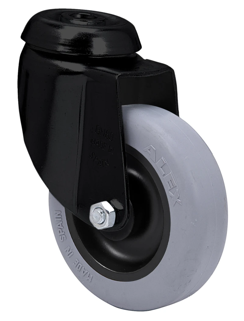 Injected grey rubber castors. Especially indicated to support loads up to 60 Kg.