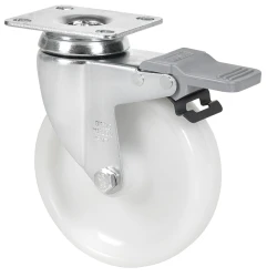 White polypropylene castors. Especially designed to support loads up to 100 kg.