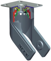Made of high quality polyamide reinforced with fibreglass. Upper swivel head with hardened double ball bearing (swivel plate and bolt hole). Embedded ball bearing (threaded pin). Manufactured according to European Standards EN 12530.