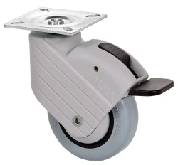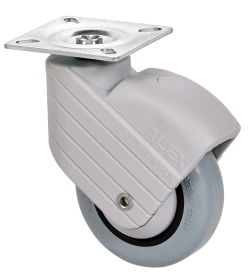 Polyamix and grey rubber wheels. Especially suitable for supporting loads of up to 40 kg. Our range of HP-PGI series wheels is recommended for medium load capacity sectors. Suitable for use in: displays, furniture, stools, catering, hospitals, utility carts, clinical and sanitary furniture, IV stands, cleaning trolleys, and IV pole holders.