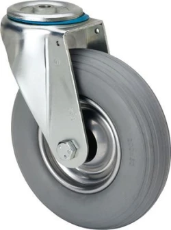 Grey castors with puncture-proof pneumatic tyres, with metallic rim and elastic tyre, especially indicated to support high-loads up to 75 Kg.