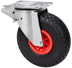 Black pneumatic castors, with polypropylene centre and plain wheel bearing (RIFN) or roller wheel bearing (RIFR), especially indicated to support high-loads up to 100 Kg.