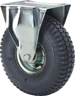 Pressed steel bracket.Finish: zinc plated.Excellent shock absorption.Low rolling resistance on uneven floors.Very floor saving due to the air cushion.