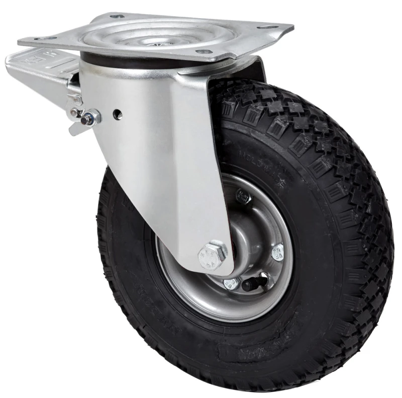 Black castors with polypropylene rim. Four and six-ply pneumatic tyre, especially indicated to support high-loads up to 220 Kg.