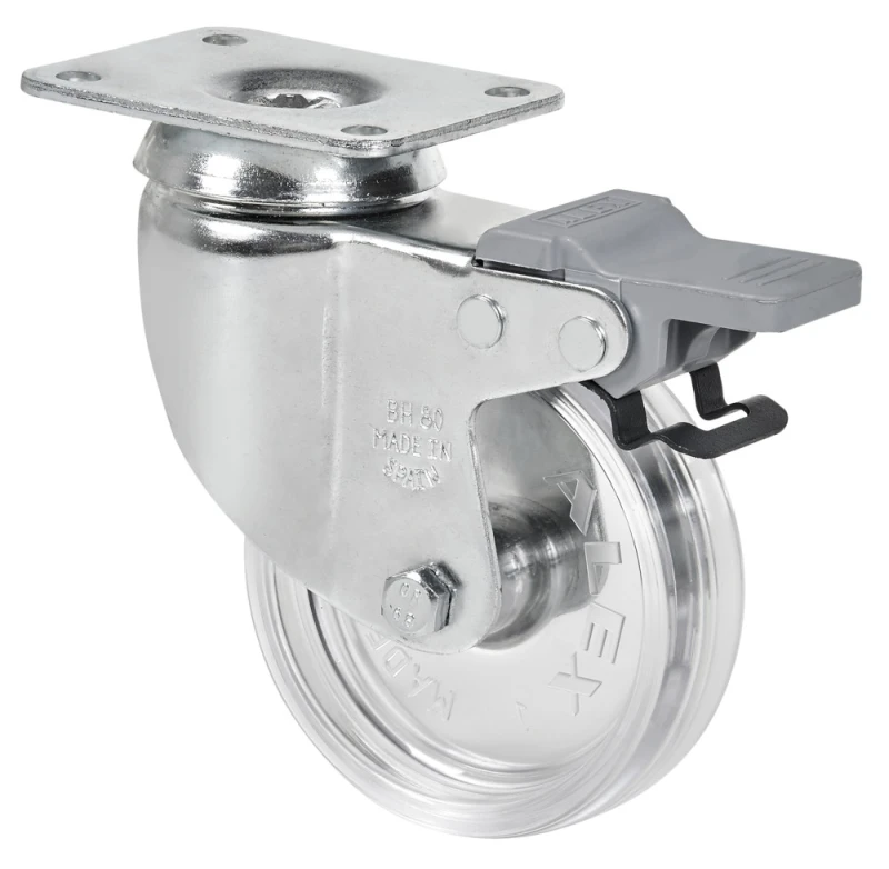 Our range of BH SERIE castors, is recommended for the medium duty sectors. It is used in: hospitality industry, hospitals, display stands, sales counters, decoration, canteens, dining rooms, restaurants, supermarkets, furniture, stackable boxes, stools, display cabinets, clothes racks, catering carts, freezers, freezer cabinets, packaging machines, conveyor belts, cabinetmaker's, tools, sanitary furniture, drips and housekeeping carts.