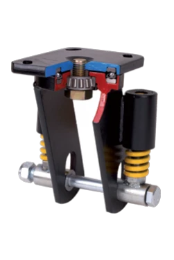 Castors with steel centre and cast polyurethane tyre with a hardness of 95º Shore A, especially indicated to support high-loads up to 1.250 Kg. With highly resistant spring loaded suspension, ideal in uneven surfaces due to its shock absorption.