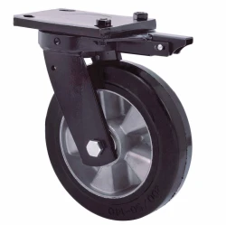Castors with aluminium centre and elastic black rubber tyre and a hardness of 70º Shore A. Especially indicated to support high-loads up to 500 Kg.