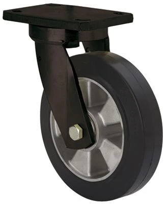 Castors with aluminium centre and elastic black rubber tyre and a hardness of 70º Shore A. Especially indicated to support high-loads up to 500 Kg.