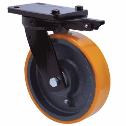 Castors with steel centre and cast polyurethane tyre with a hardness of 95º Shore A, especially indicated to support high-loads up to 1.900 Kg.