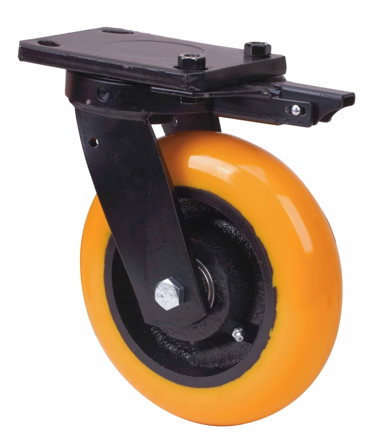 Castors with steel centre and cast polyurethane tyre with a hardness of 95º Shore A, with a ball-shaped tread tyre, especially indicated to support high-loads up to 800 Kg.