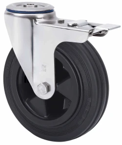 Black rubber castors with stainless steel (AISI 304) components. Especially indicated to support high-loads up to 215 Kg.