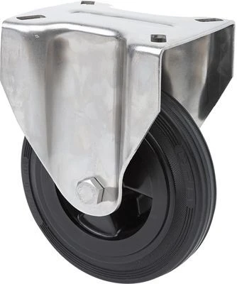 Black rubber castors with stainless steel (AISI 304) components. Especially indicated to support high-loads up to 215 Kg.