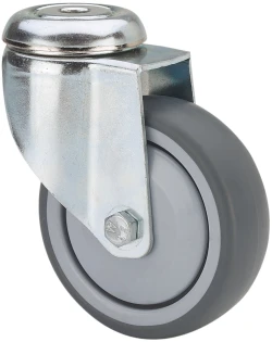 Castors with polypropylene centre and grey rubber tyre. Especially indicated to support high-loads up to 130 Kg.