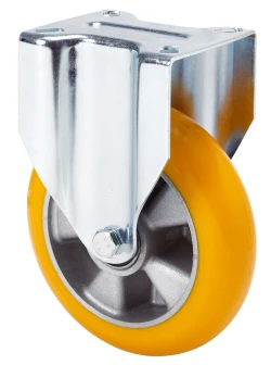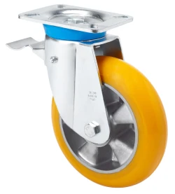 Castors with aluminum centre and cast polyurethane tyre with a hardness of 95º Shore A, with a ball-shaped tread tyre, especially indicated to support high-loads up to 750 Kg. It is used in: logistics transport tools, repair shops, internal logistics, food industry, logistics for military missions material, heavy machinery and containers. Mainly used in the industrial sector, aeronautic sector and automobile factories. Suitable for mechanical engineering projects by craftsmen and project executors.