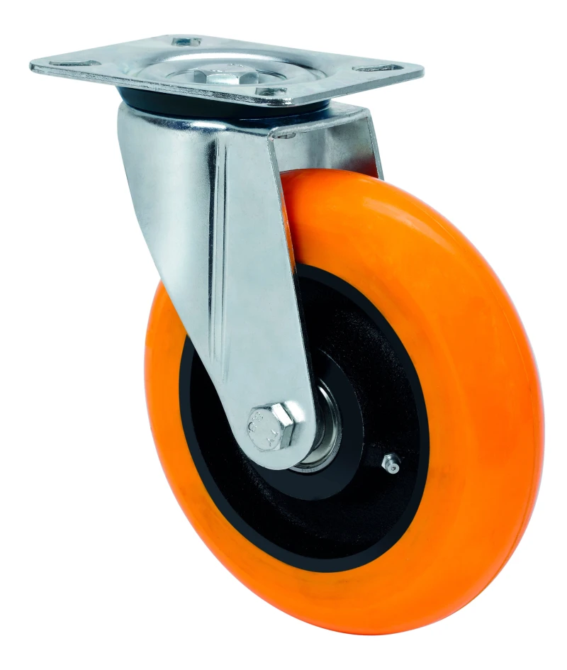 Wheels with a steel core and a polyurethane tread with a hardness of 95˚ Shore A, featuring a balloon-shaped tread, especially designed to support high loads of up to 700 kg