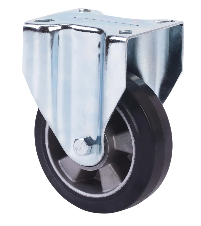 Castors with aluminium centre and elastic black rubber tyre with a hardness of 70º Shore A. Especially indicated to support high-loads up to 450 Kg.