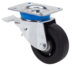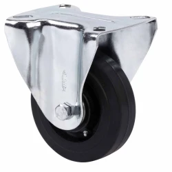 Castors with steel centre and black rubber tyre, especially indicated to support high-loads up to 600 Kg.