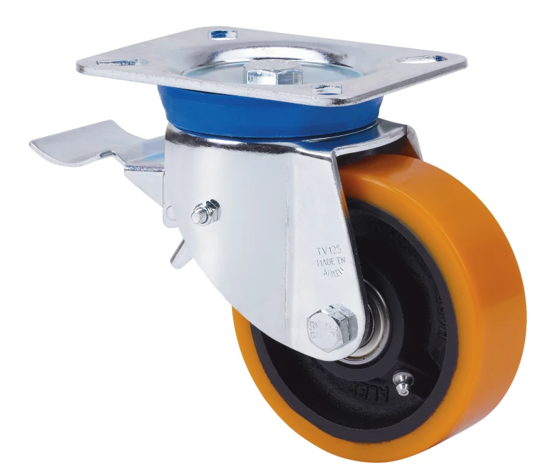 Castors with steel centre and cast polyurethane tyre with a hardness of 95º Shore A, especially indicated to support high-loads up to 800 Kg.