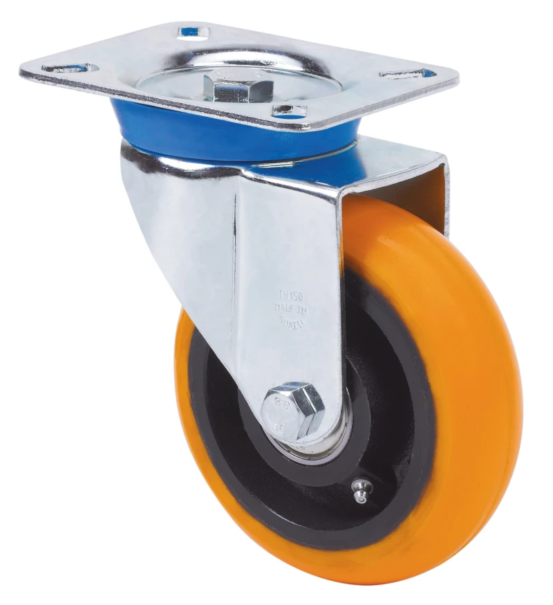Castors with steel centre and cast polyurethane tyre with a hardness of 95º Shore A, with a ball-shaped tread tyre, especially indicated to support high-loads up to 800 Kg.