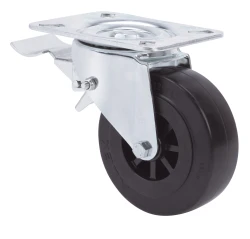 Castors with black nylon centre and rubber tyre. Especially indicated to support high-loads up to 200 Kg.