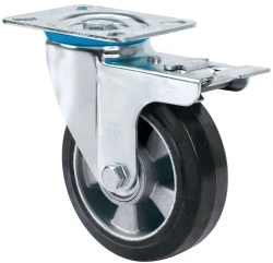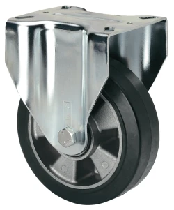 Castors with aluminium centre and black elastic rubber tyre with a hardness of 70º Shore A. Especially indicated to support high-loads up to 450 Kg.