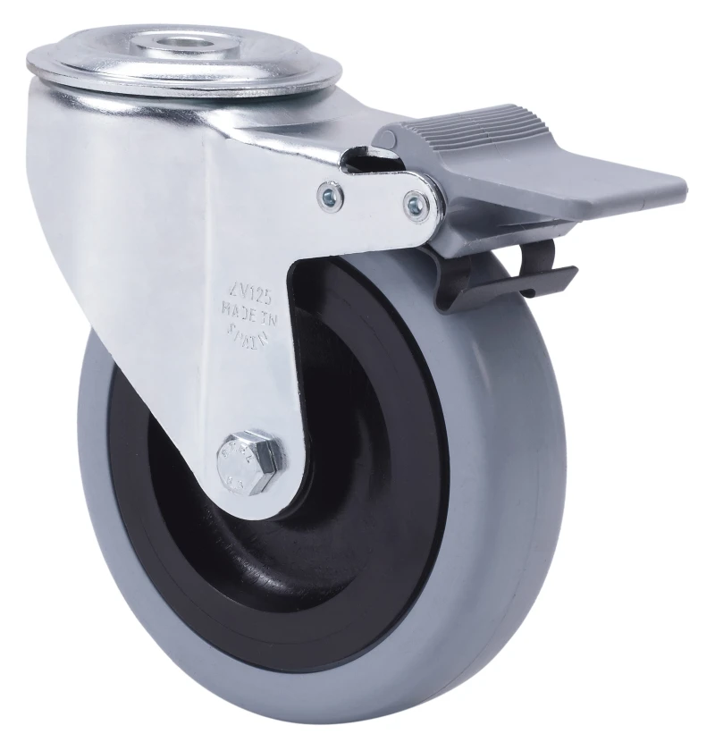 Grey rubber castors. Especially indicated to support high-loads up to 135 Kg.
