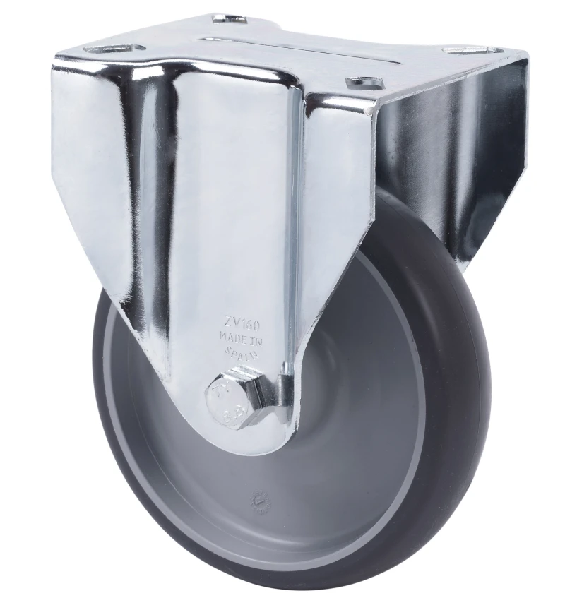 Grey injected rubber castors with polypropylene centre. Especially indicated to support high-loads up to 180 Kg.