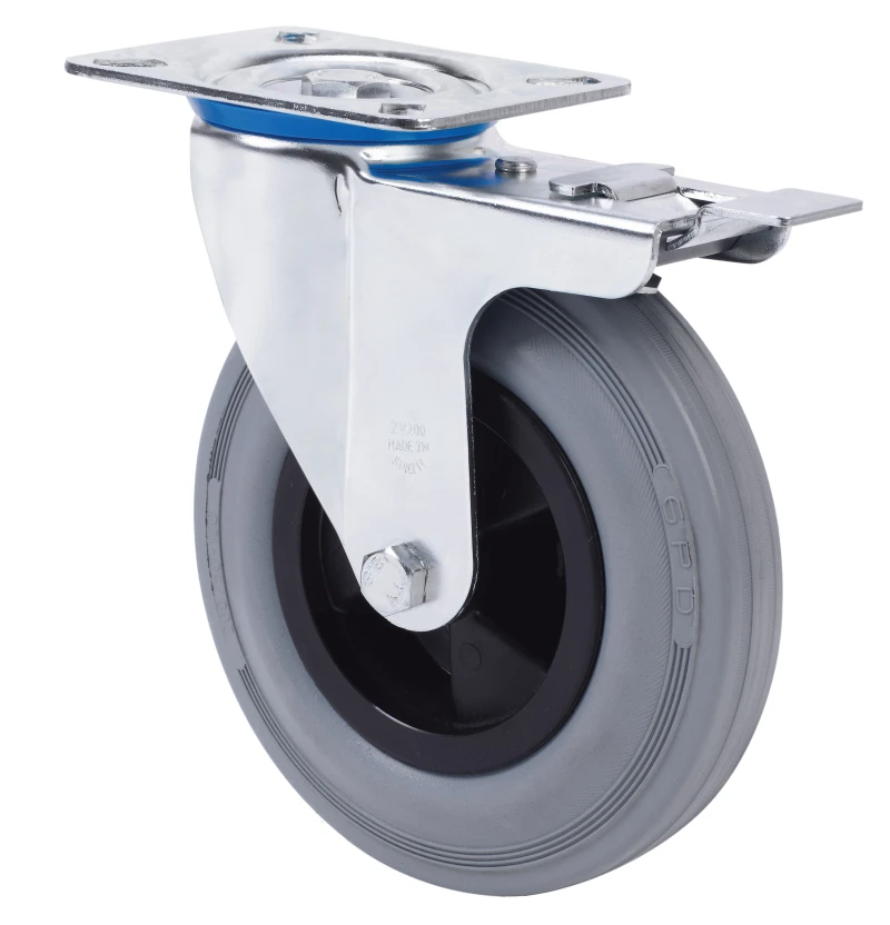 Grey rubber castors. Especially indicated to support high-loads up to 250 Kg.