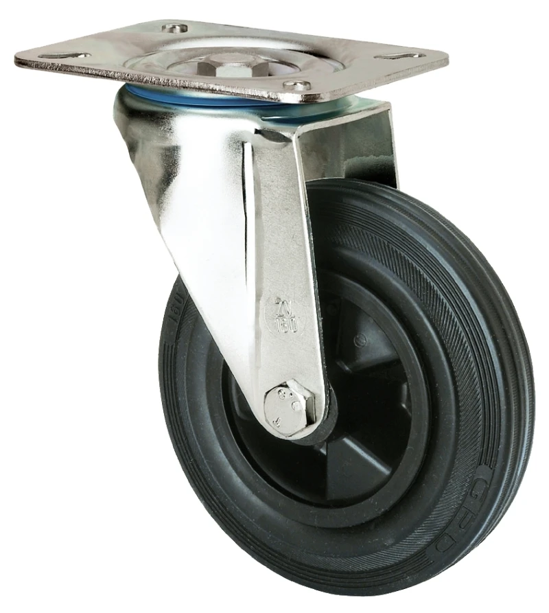 Black rubber castors. Especially indicated to support high-loads up to 215 Kg.