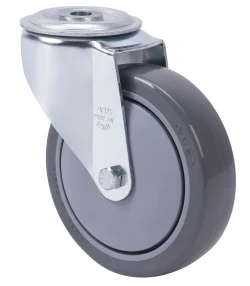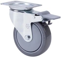 Castors with polypropylene centre and grey injected polyurethane tyre. Especially used to support high-loads up to 200 Kg.