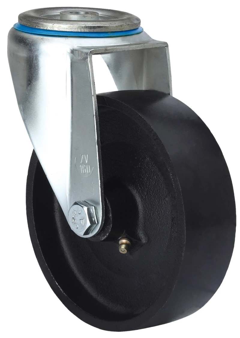 Made of pressed steel up to 4 mm.Finish: zinc plated finish.Double ball bearing in the swivel head.Universal model for medium-duty loads.Manufactured to European standards EN 12530/12532.