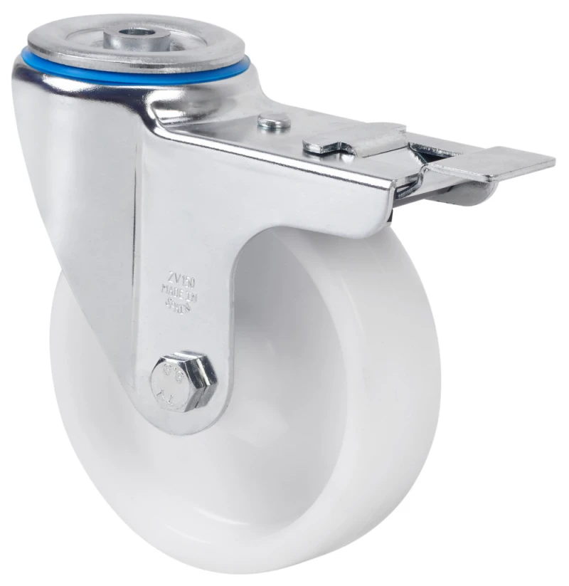 White polypropylene castor, especially indicated to support high-loads up to 400 Kg.