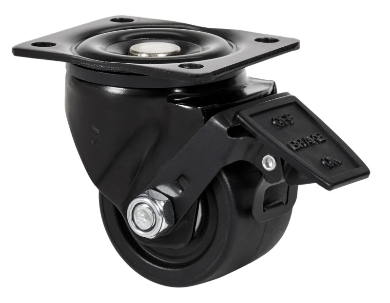 Reinforced nylon castors, especially designed to support loads up to 600 Kg with minimal height.