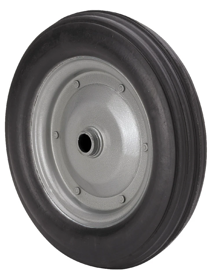 Black rubber wheels: Cast iron centre, pressed steel centre, nylon centre or polypropylene centre. Black Rubber tyres. Wheel Bearings: plain bearing, roller bearing or ball bearing. Temperature range: -20º C to +60º C.