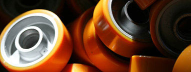 The wheels are made in different colours and materials that confer distinct properties and specifications. A wheel is chosen in function of the conditions of use and operation.